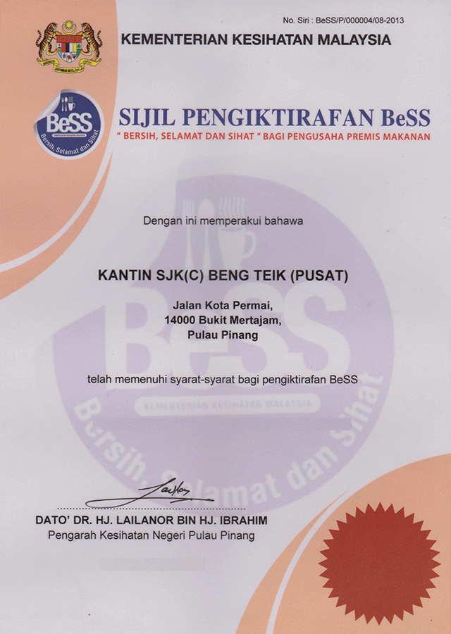 明德正校食堂被槟州卫生局及JPN邀请出席在KOMTAR 5楼举办的颁奖礼